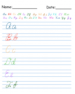 Download the cursive writing worksheets and make the kids write english letters in flowing manner.